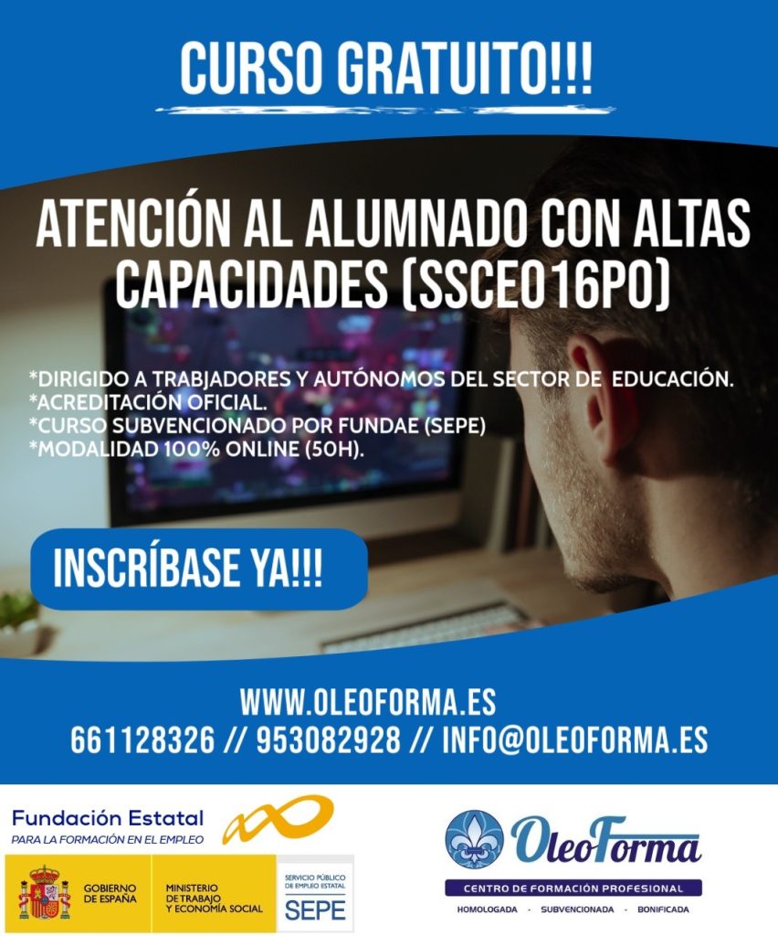 CURSO ATENCIÓN AL ALUMNADO CON ALTAS CAPACIDADES / Del 5 de septiembre al 9 de octubre